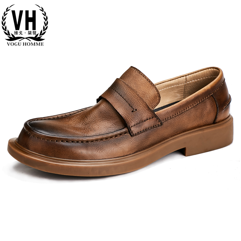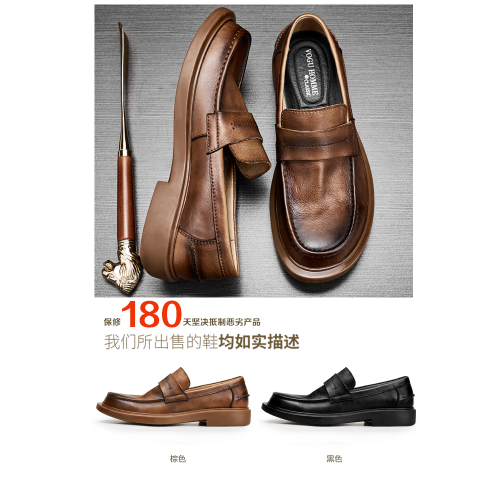 纯手工厚底防滑中年爸爸鞋 老人头男鞋 新款 男秋季 真皮商务休闲皮鞋