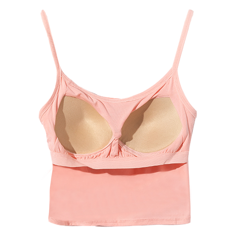 桑蚕丝保暖吊带背心女2025秋加绒加厚发热无痕自带胸垫一体内衣冬