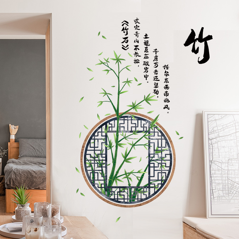 中国风墙贴山水风景字画墙面装 饰墙壁贴纸背景墙遮丑墙纸自粘贴画