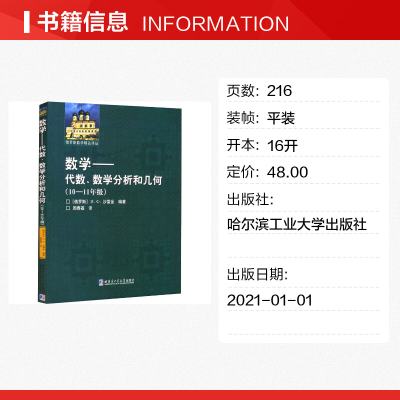 图书籍 社 11年级 编 数学文教 И.Ф.沙雷金 俄罗斯 哈尔滨工业大学出版 数学——代数 新华书店正版 数学分析和几何