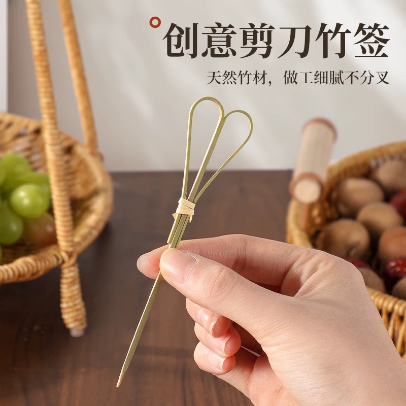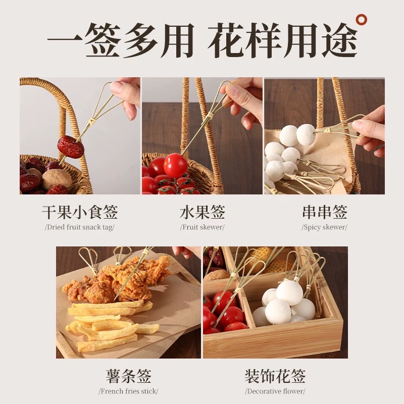 一次性水果签家用竹质花签高级感牙签插签创意儿童可爱糖葫芦串签
