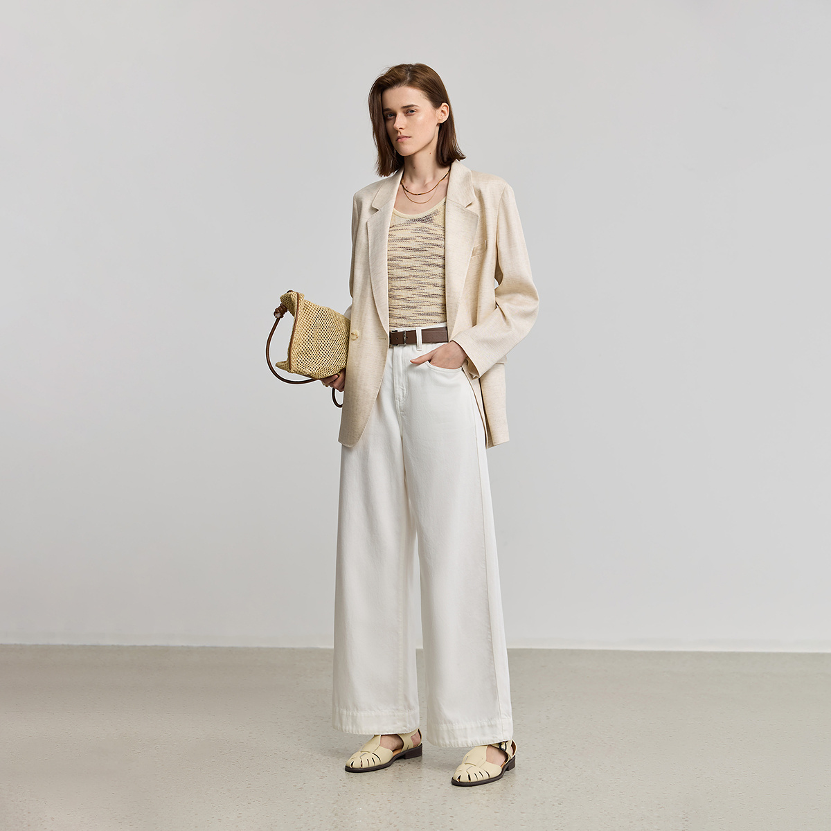 阔腿裤 直筒休闲拖地裤 女夏季 高腰垂感小个子冰丝窄版 薄款 白色西装