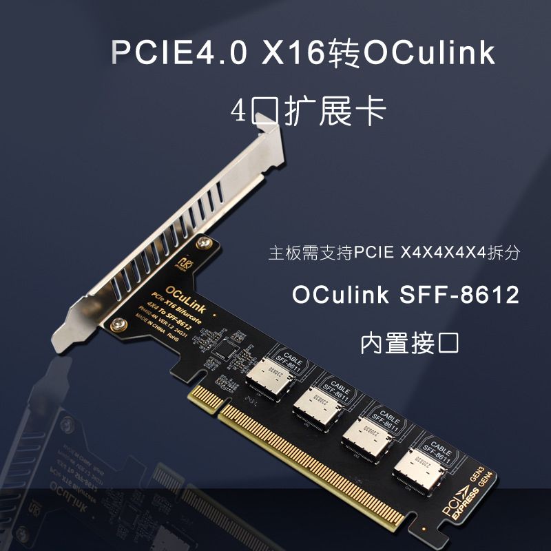 Oculink外置显卡扩展卡外接 X16拆分4口SFF8611&8612 NVME PCIe
