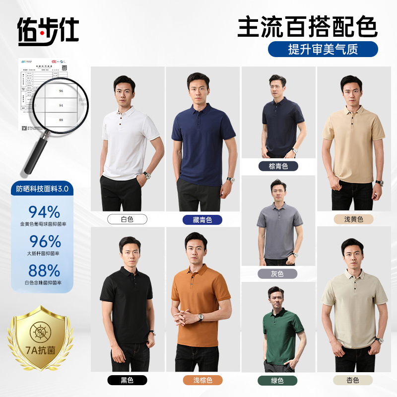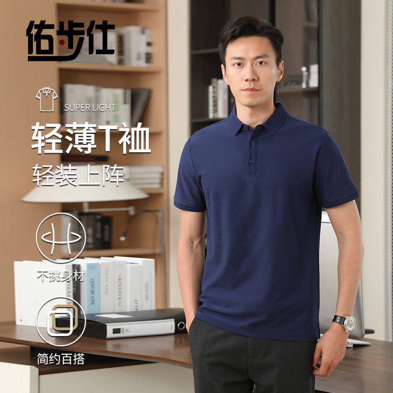 大码 商务休闲t恤男夏季 薄款 回力男士 男款 2025新款 翻领短袖 polo衫