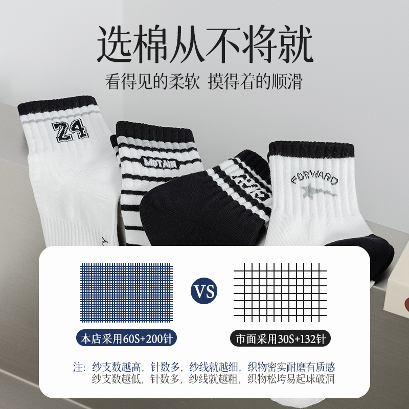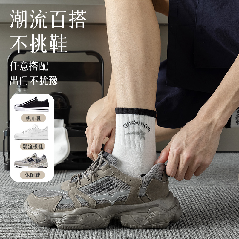 男士 运动短袜中筒吸汗日抛长筒 一次性袜子50双免洗防臭纯棉男女款