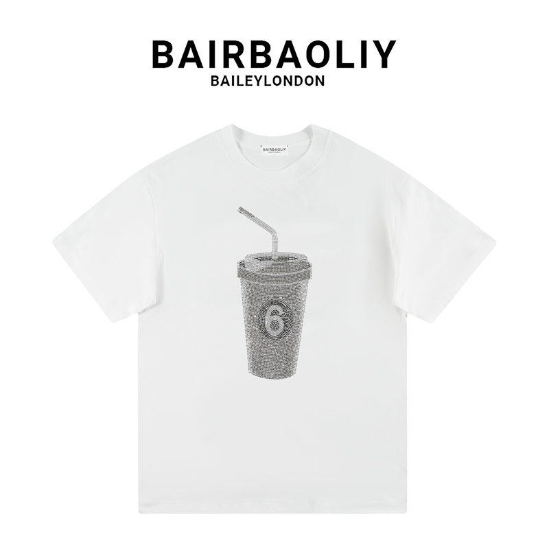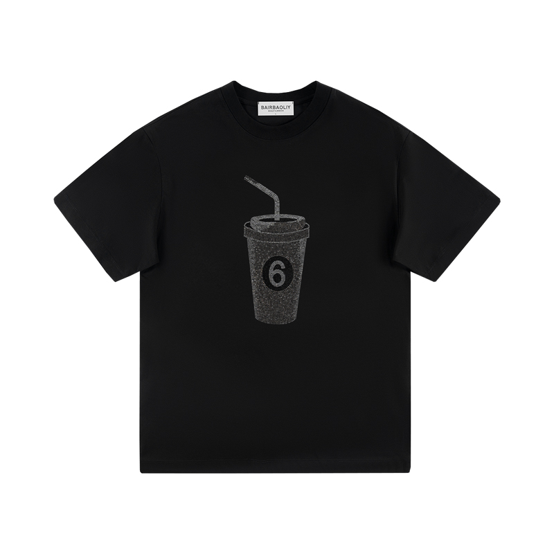 BAIRBAOLIY2025创意满钻6号杯潮牌痞帅街拍酷帅短袖 T恤男女同款