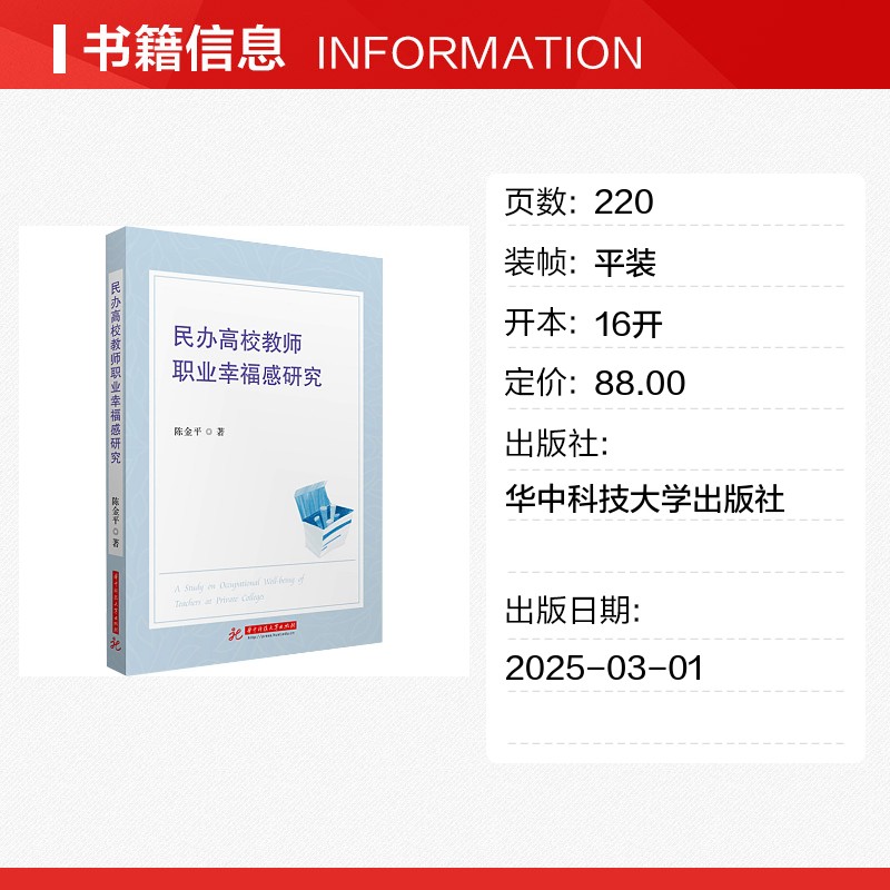 教育 教育普及经管 华中科技大学出版 陈金平 社 图书籍 著 新华书店正版 民办高校教师职业幸福感研究 励志