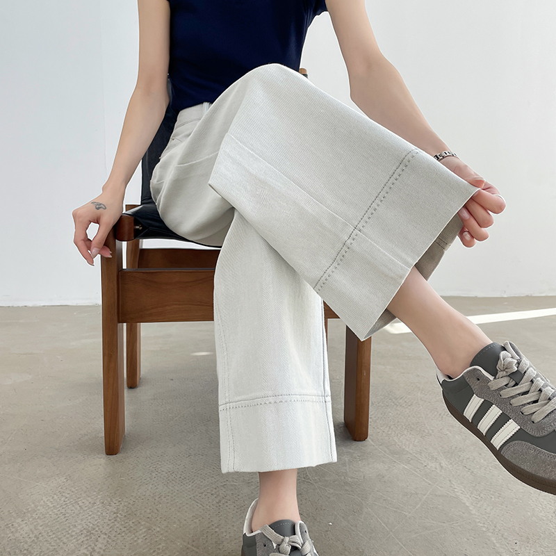 阔腿牛仔裤 直筒裤 女2025秋冬新款 显瘦弯刀裤 子 加绒女裤 米白色窄版