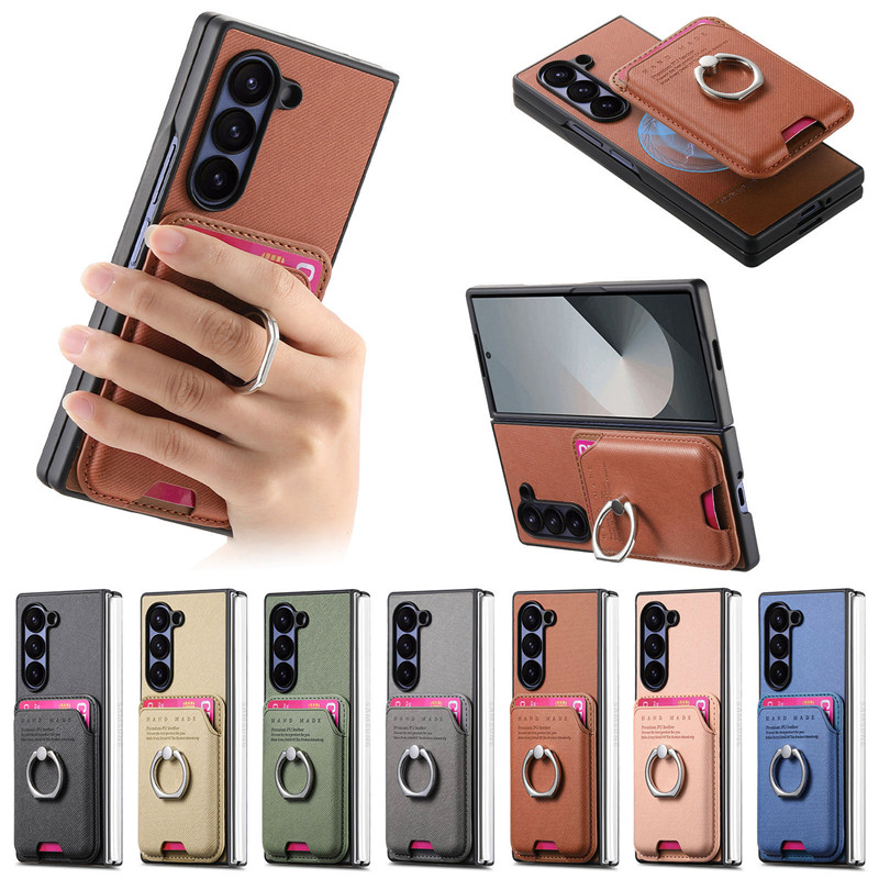 case电话壳带指环分体磁吸卡包fold3布纹壳cover fold4 适用三星zfold5手机壳可插咭samsung zfold6折叠机套z