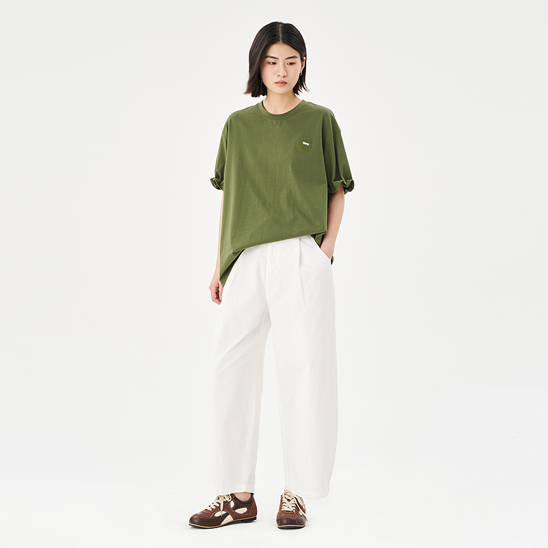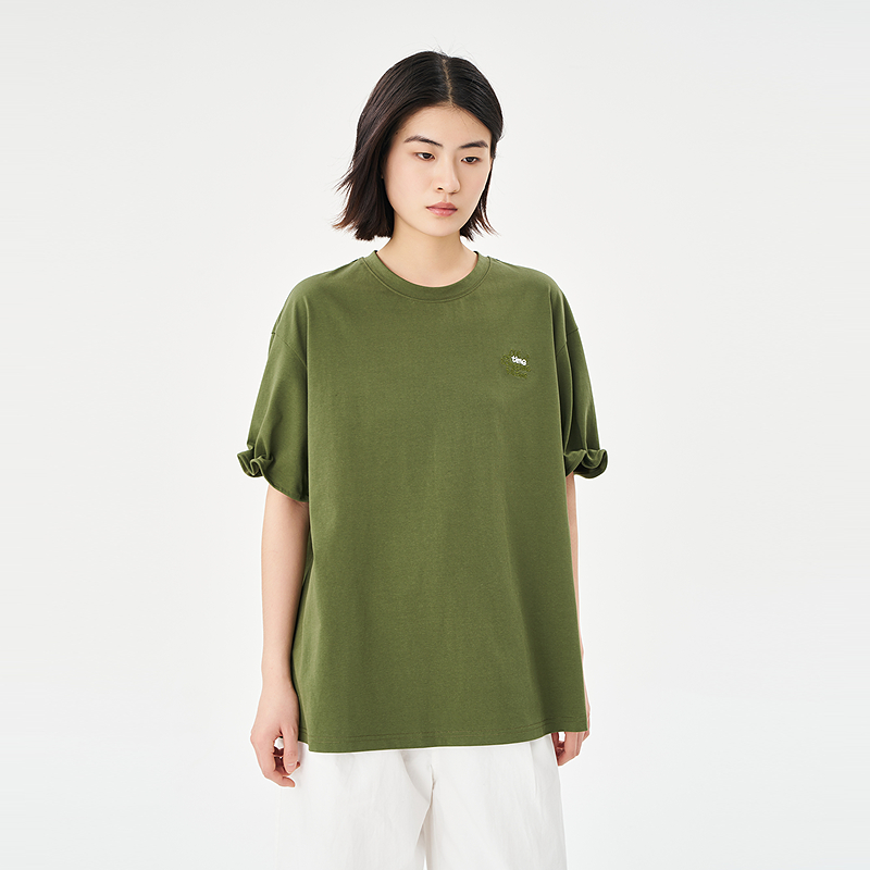 OTT2025夏新品 上衣 宽松圆领绣花设计感T恤女H型时髦百搭显瘦短袖
