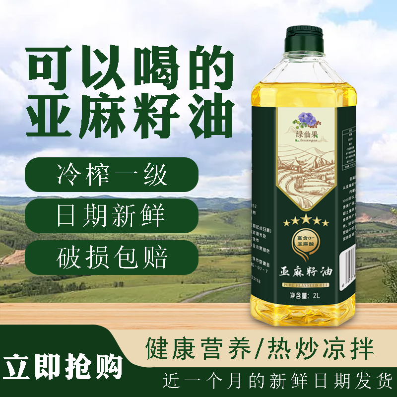 物理冷榨纯亚麻籽油2L内蒙胡麻油凉拌热炒食用油辅食油官方旗舰店