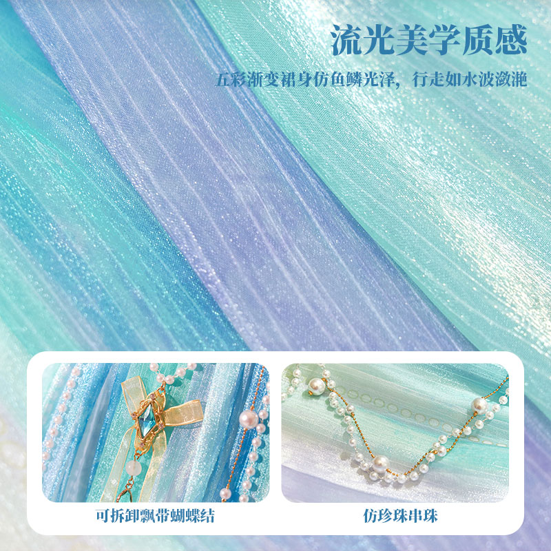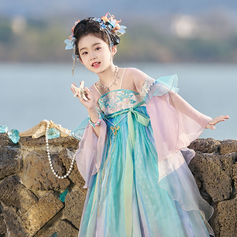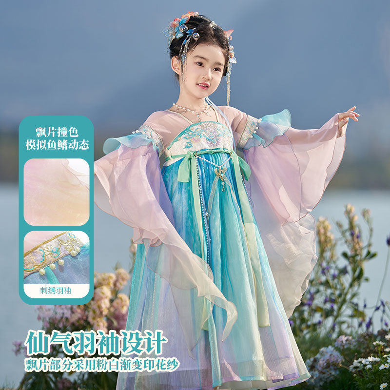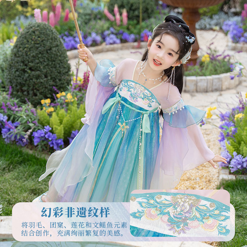 古风织金刺绣超仙齐胸连衣裙 汉服女童夏季 十三余童装 灵鱼渡海