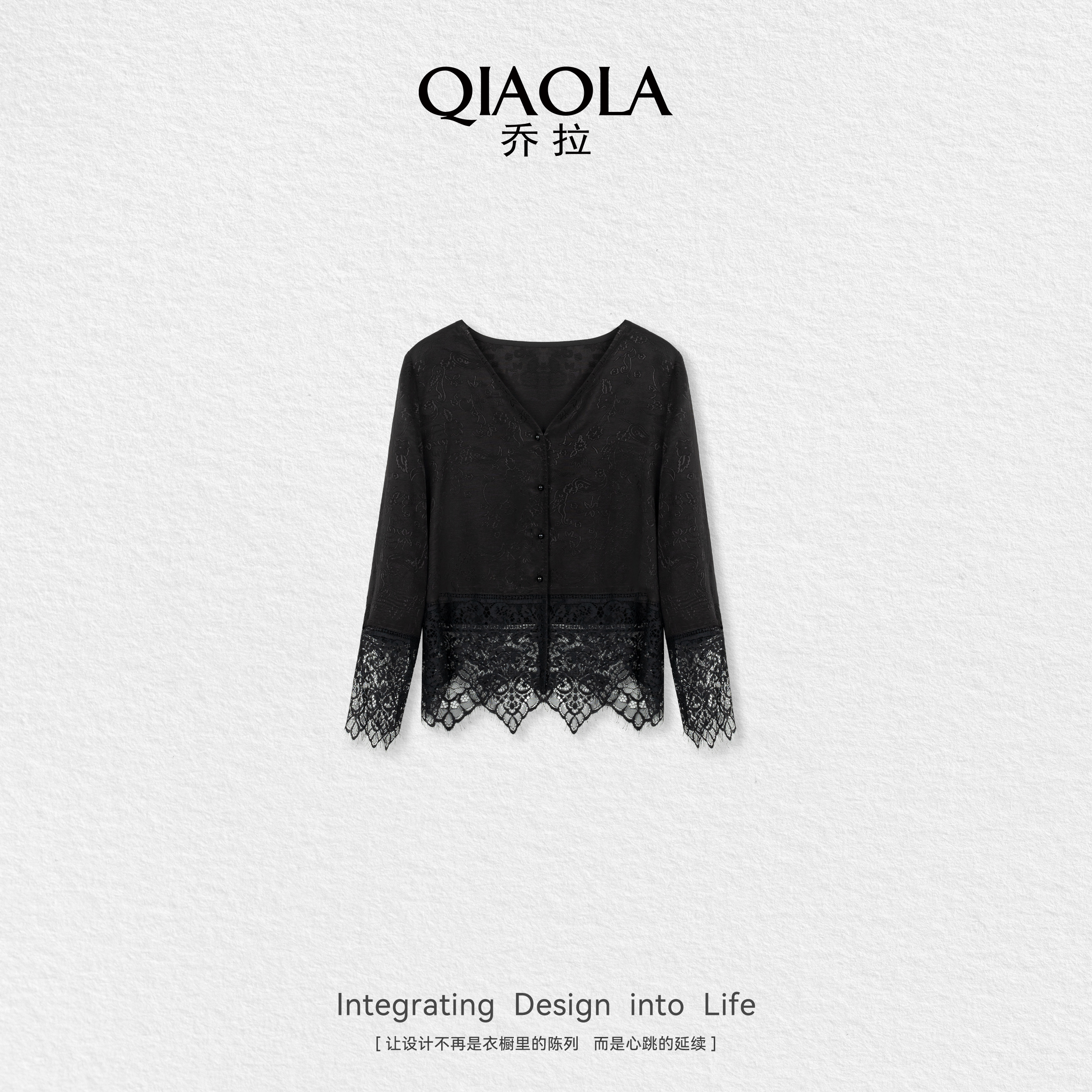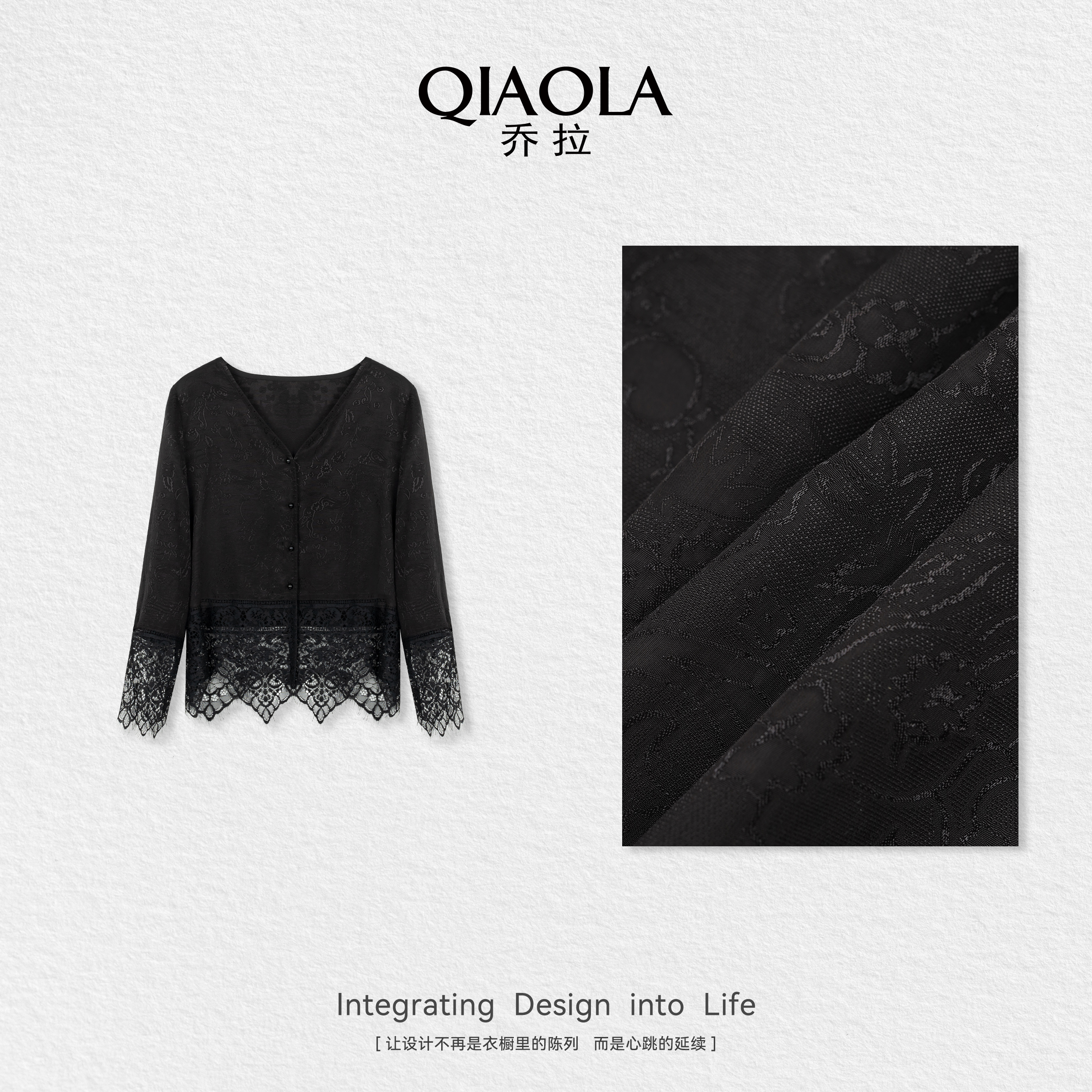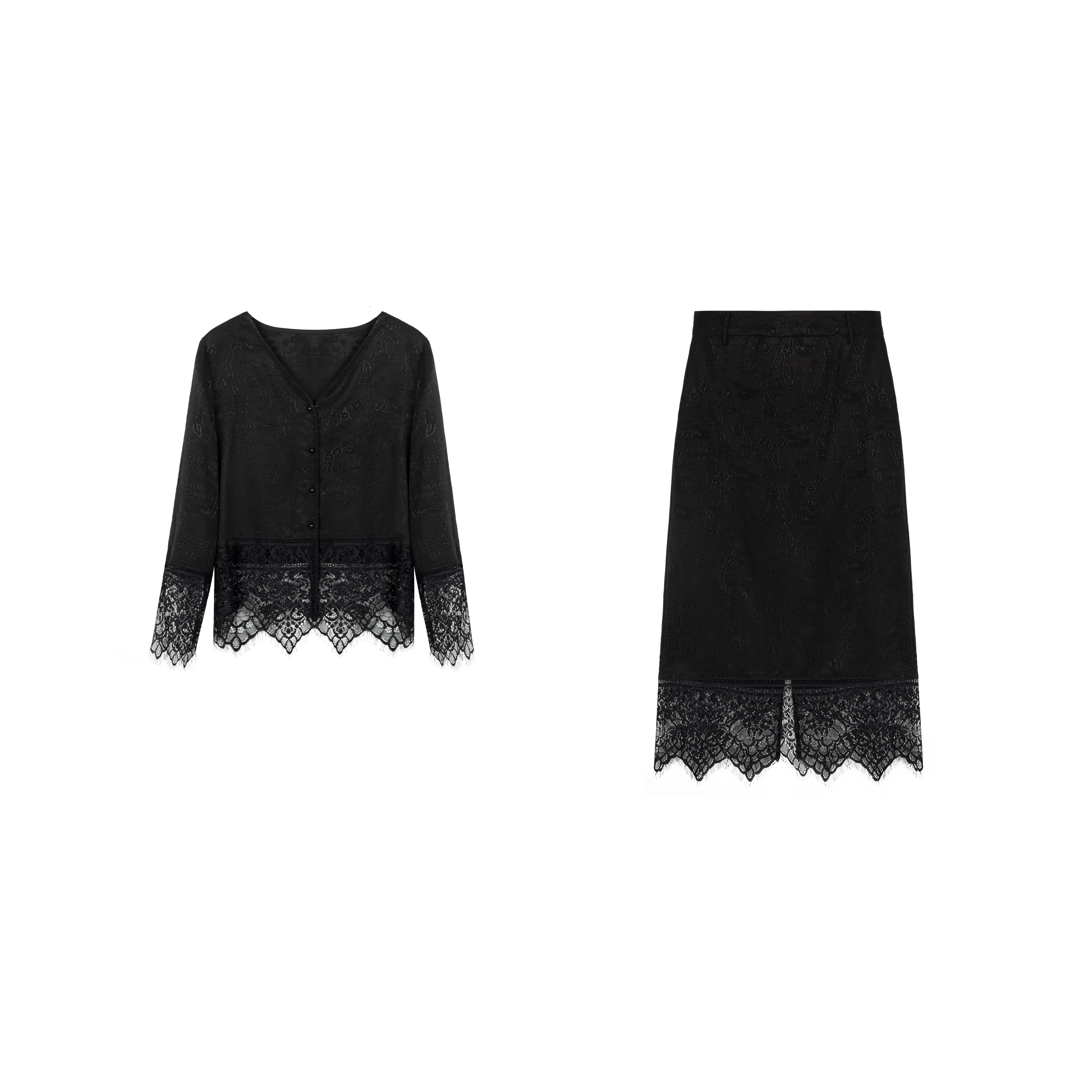 打底上衣女气质套装 乔拉 黑色蕾丝边长袖 法式 半身裙子 荆棘之宴