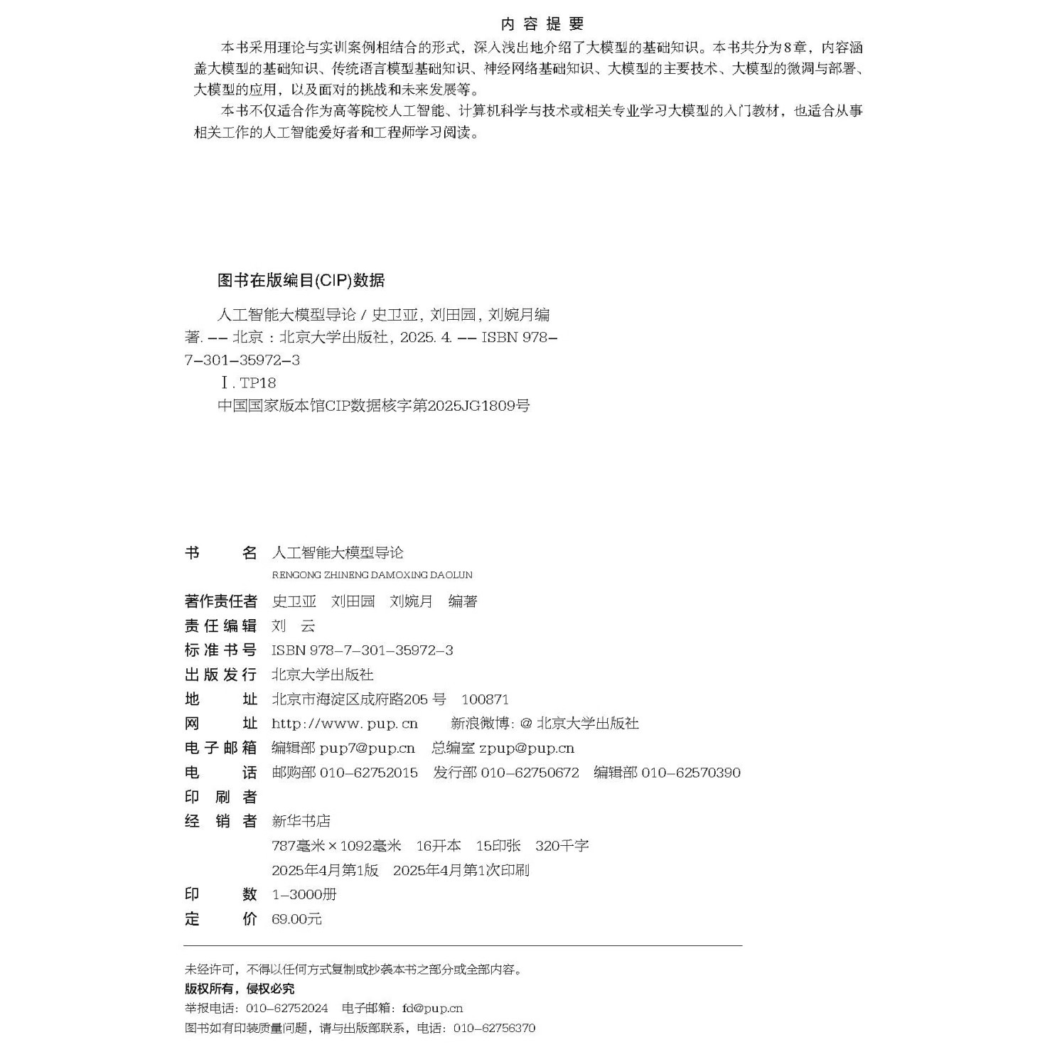引领AI技术新潮流9787301359723北京大学出版 大模型基础理论辅以实训案例聚焦核心技术与应用 社 人工智能大模型导论 现货北大正版