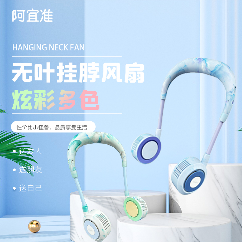 阿宜准无叶挂脖风扇流彩迷你户外便携充电式 无叶风扇降温神器USB风扇 大风力长续航随身便携式