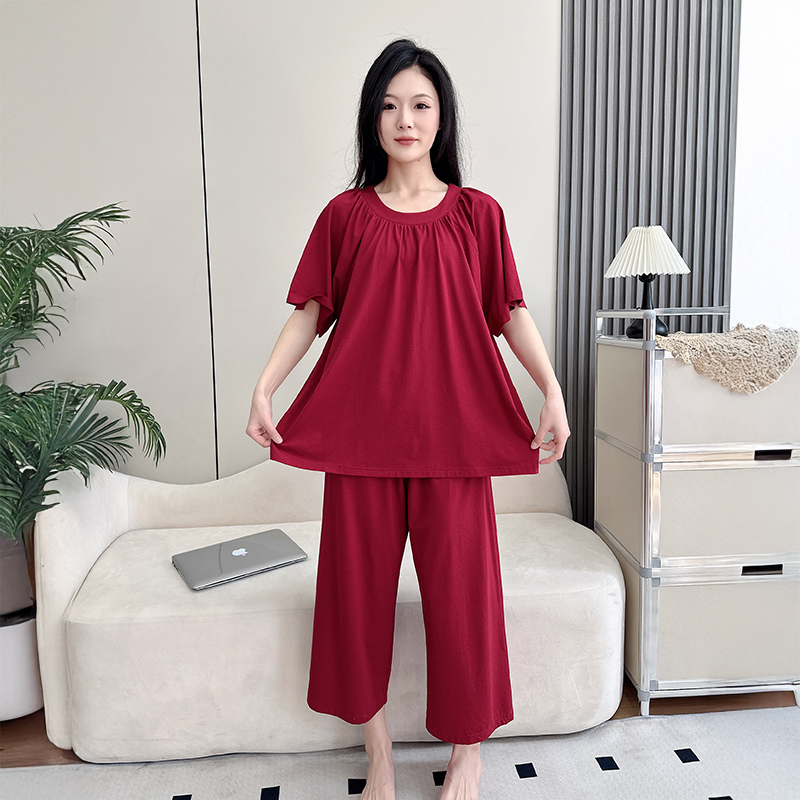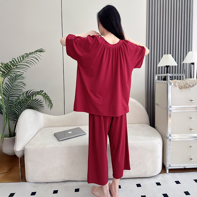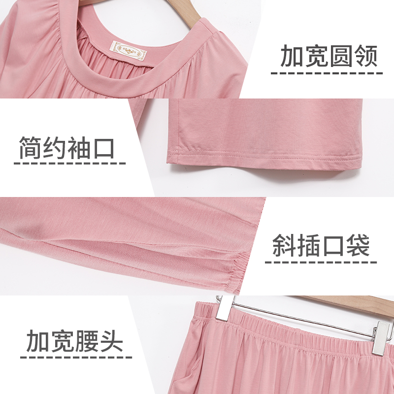 胖mm200斤7分裤 款 中老年妈妈家居服 莫代尔睡衣女夏季 加肥加大码