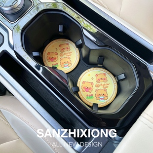 可爱小熊汽车水杯垫通用创意置物防护垫子车载防滑垫车内装 饰品女