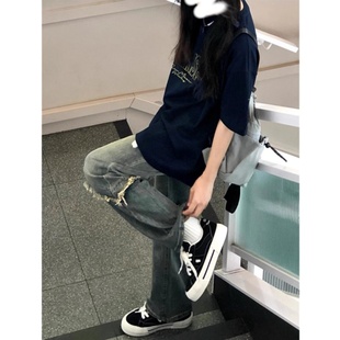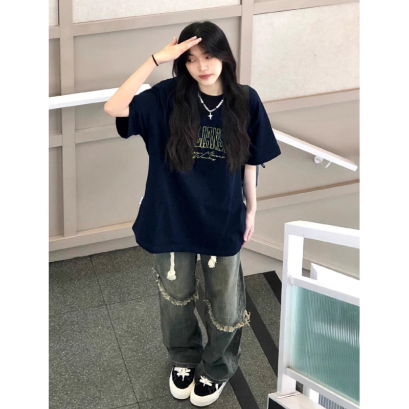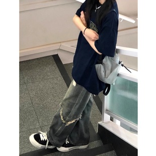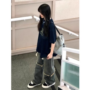 2025新款 t恤女夏季 设计感小众上衣 oversize高街字母短袖 纯棉美式