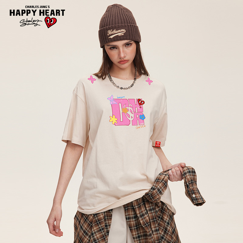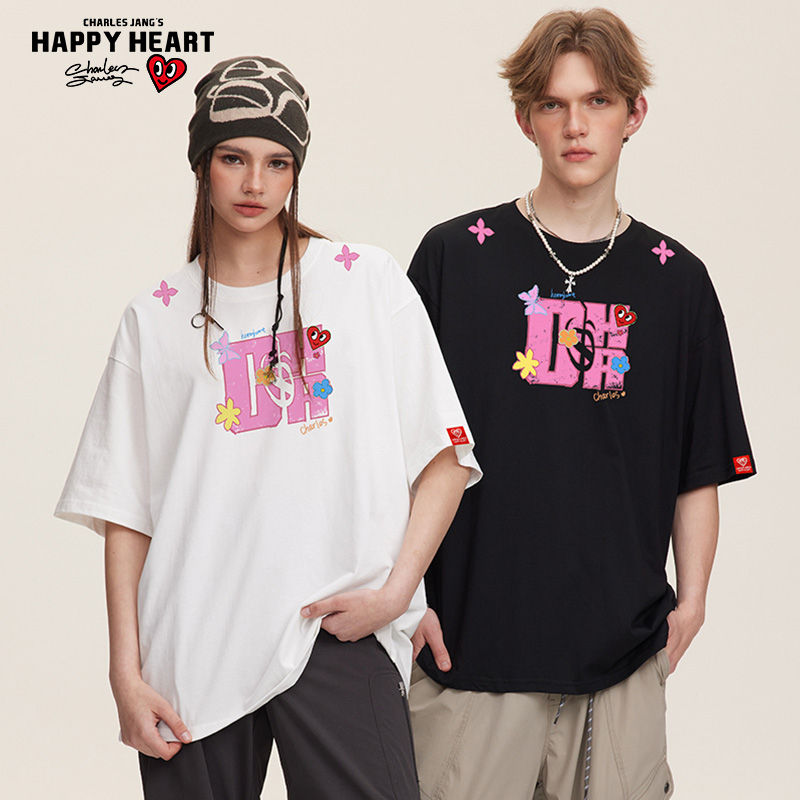 美式 t恤男女同款 2025年夏季 字母休闲圆领纯棉短袖 新款 查尔斯桃心