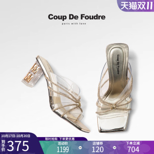 外穿拖鞋 CDF女鞋 气质法式 新款 水钻透明方头粗跟露趾凉拖 2025夏季