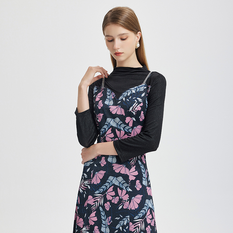 漂亮洋气长裙女装 印花假两件连衣裙子时尚 气质 马天奴秋季 专柜正品