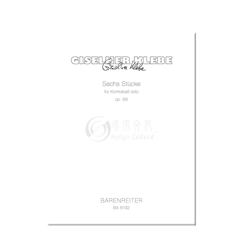 骑熊士原版 BA6192 solo Pieces 六首低音提琴独奏作品Op68 6页 for Klebe 乐谱书 Bass 吉塞尔克莱贝 Giselher Double Six
