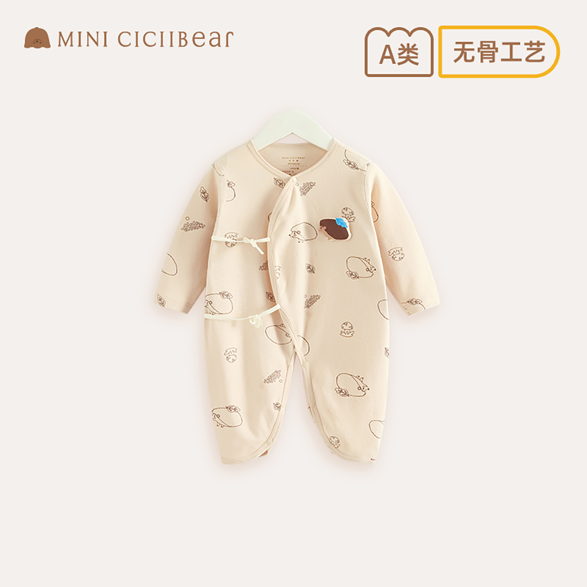婴童长袖 齐齐熊新生儿哈衣秋季 印花连体衣睡衣婴儿衣服 100%纯棉