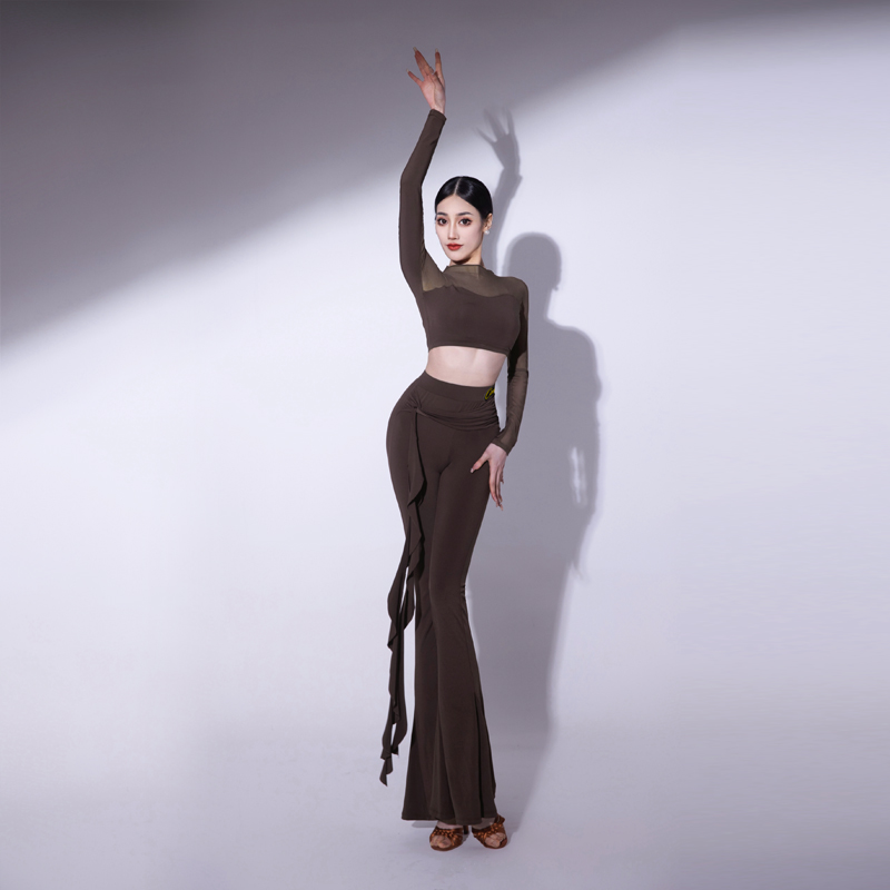 国标摩登长裤 CONNY康尼拉丁舞套装 上衣长袖 子女短款 舞蹈练功服裤