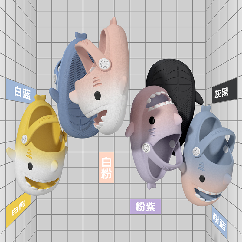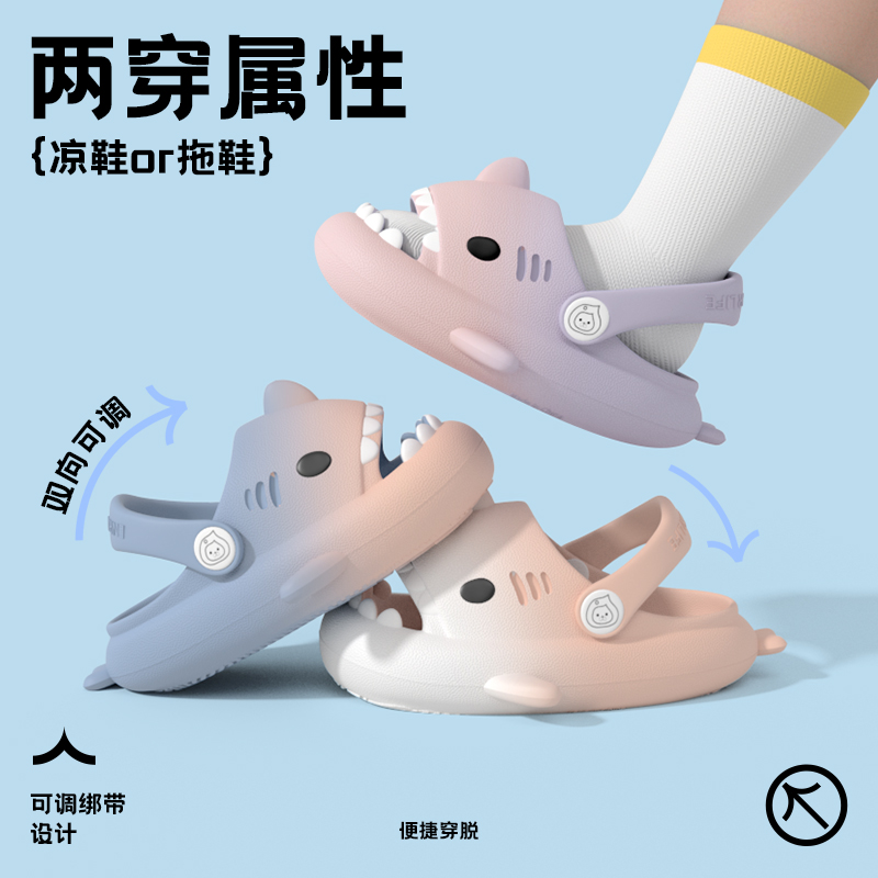 男童外穿卡通防滑小童婴儿宝宝沙滩鞋 夏季 儿童洞洞鞋 渐变鲨鱼拖鞋