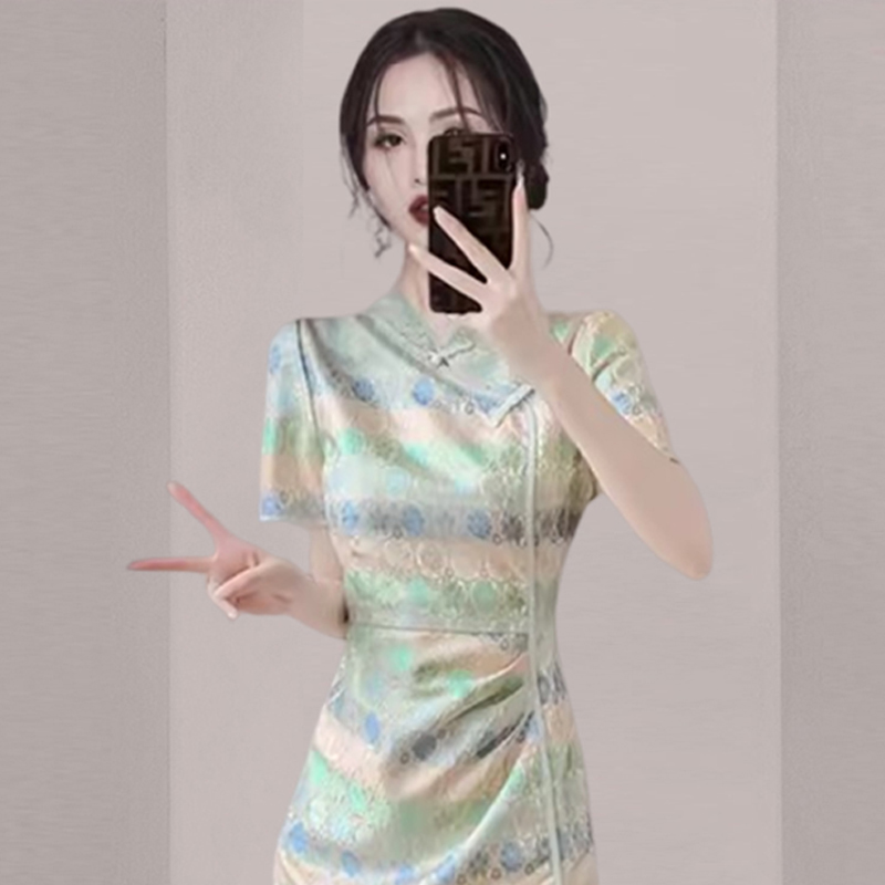 女装 收腰新中式 旗袍连衣裙夏设计感开叉复古气质时尚 中国风改良版