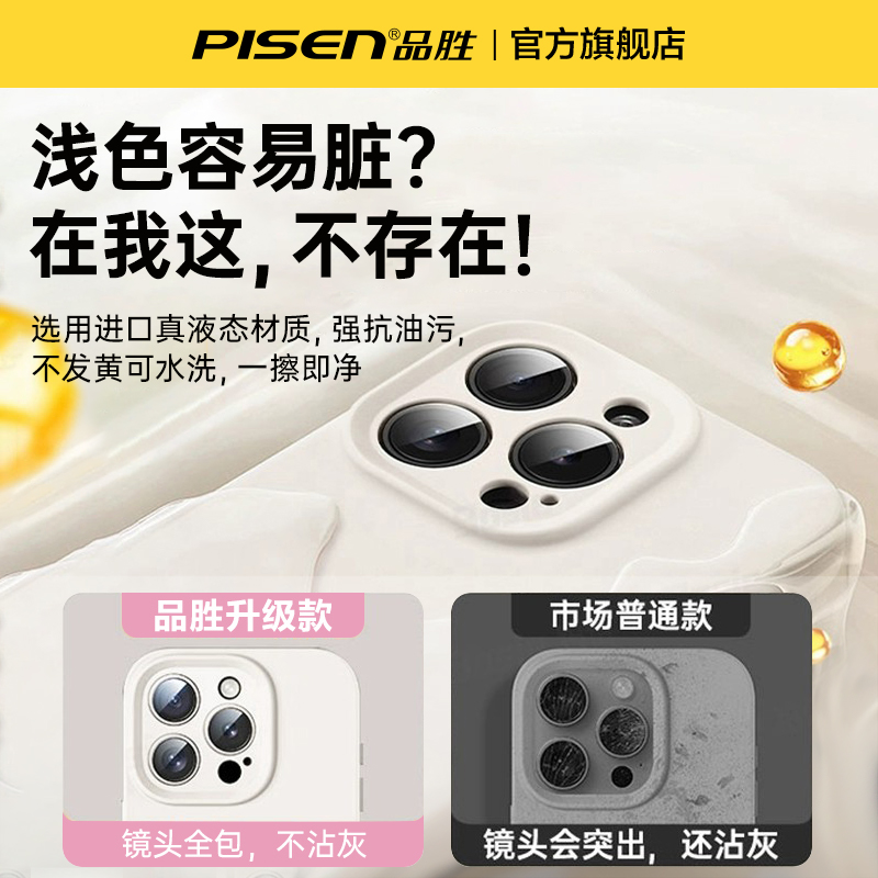 品胜适用苹果17promax手机壳新款 液态硅胶iphone16pro情侣15超薄防摔i13镜头全包散热保护套14plus男女软高级