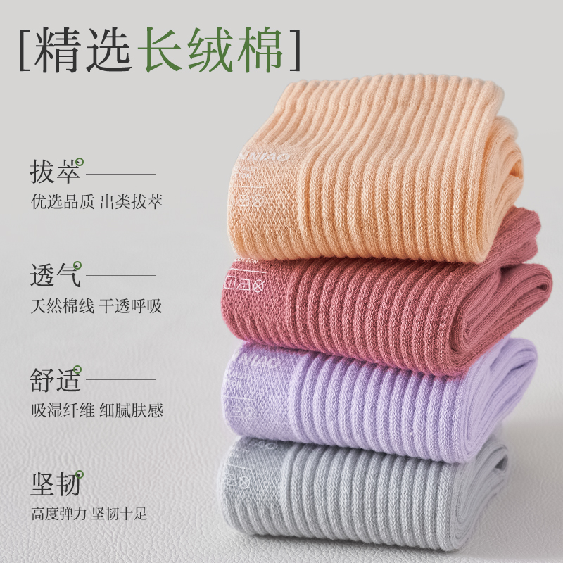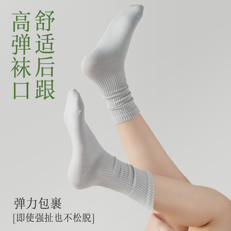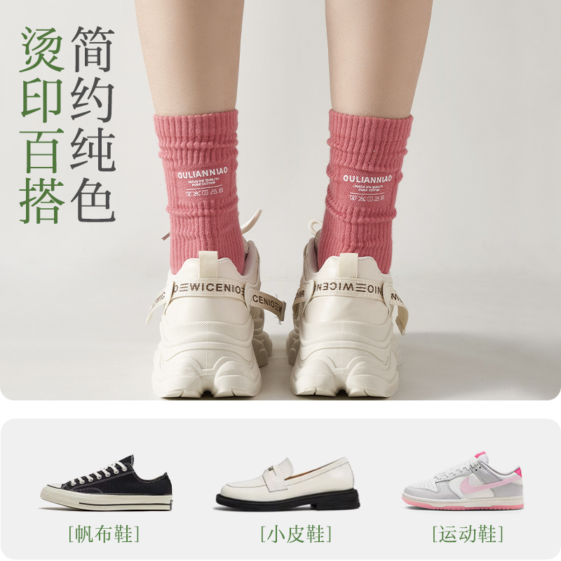 袜子女春夏款 白色堆堆长袜 束腰运动中筒袜多巴胺吸汗棉袜配鲨鱼裤