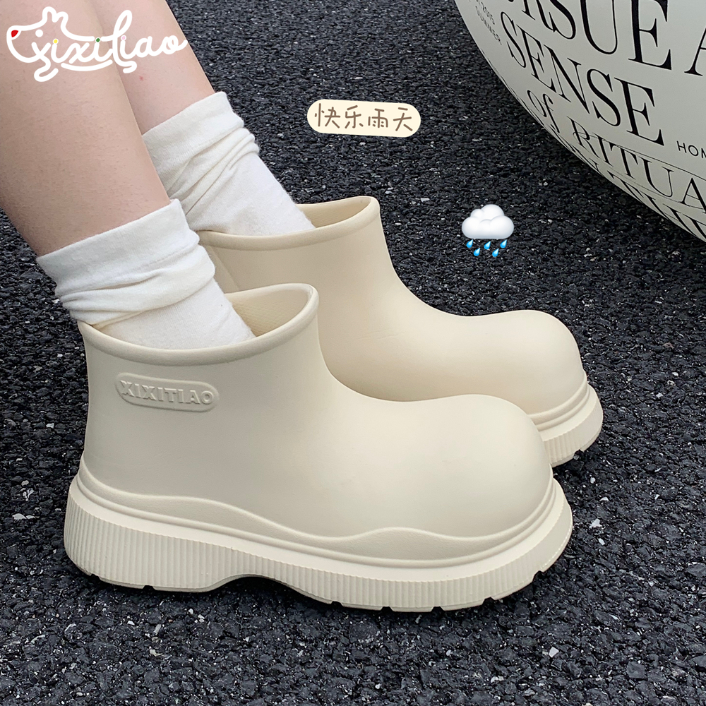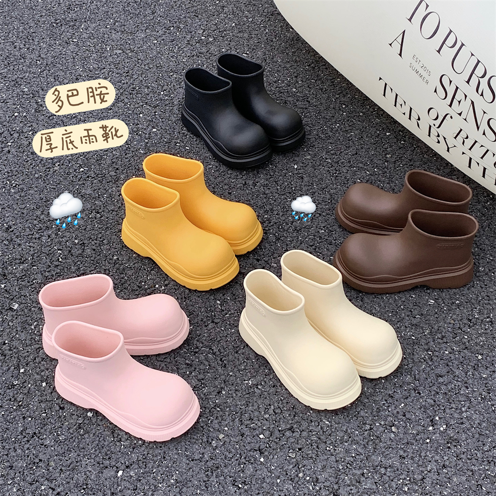 女 外穿防水短筒雨靴创意丑萌可爱大头雨鞋 纯色百搭春夏季 网红时尚