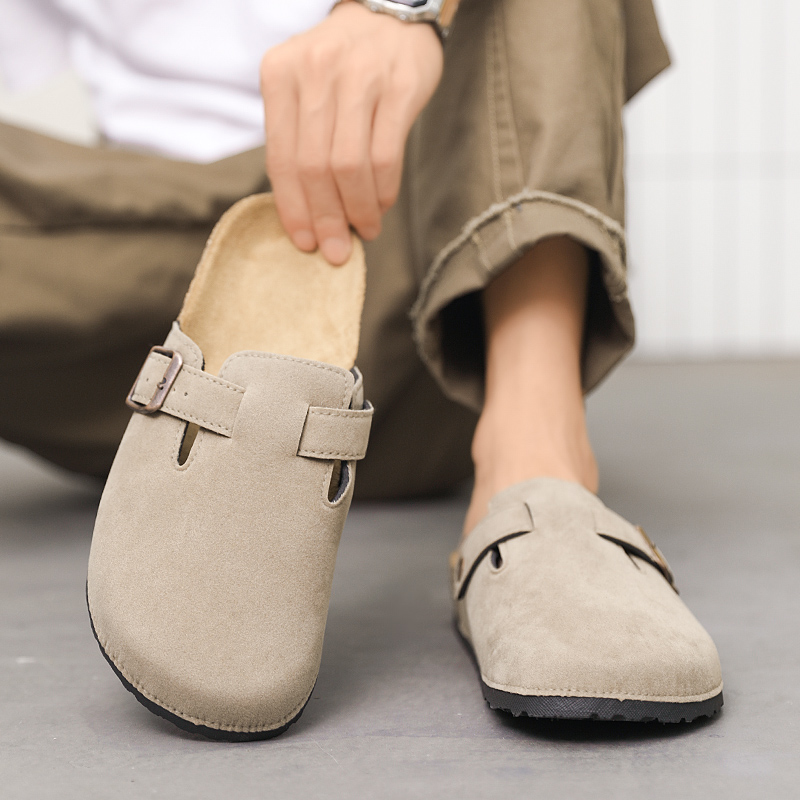 勃肯鞋 DYOWOZ 情侣款 平底休闲外穿半包头拖鞋 东园物作真皮软木鞋