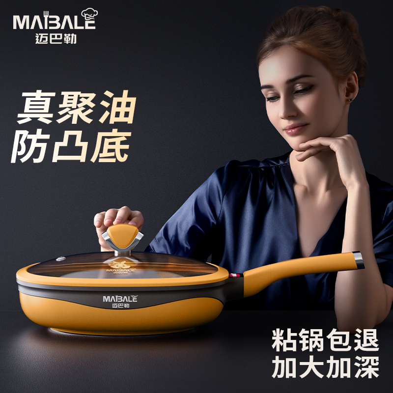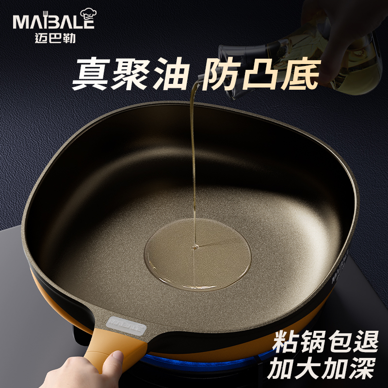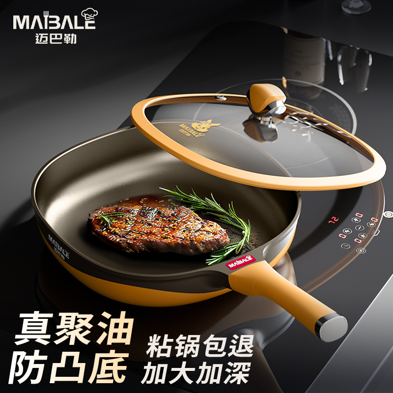 迈巴勒官方旗舰店聚油平底煎锅不粘锅炒菜专家用煤气灶电磁炉28CM