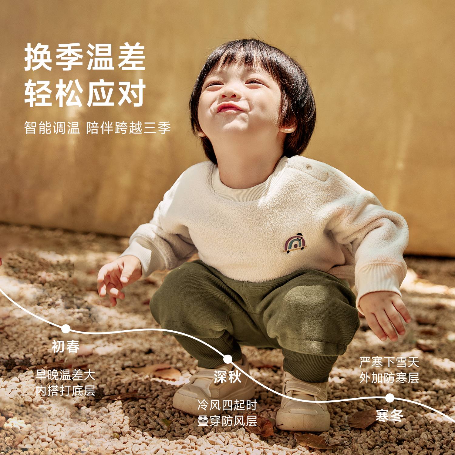 新款 尼多熊冬季 宝宝卫衣加绒男女纯色双面绒圆领长袖 登山绒