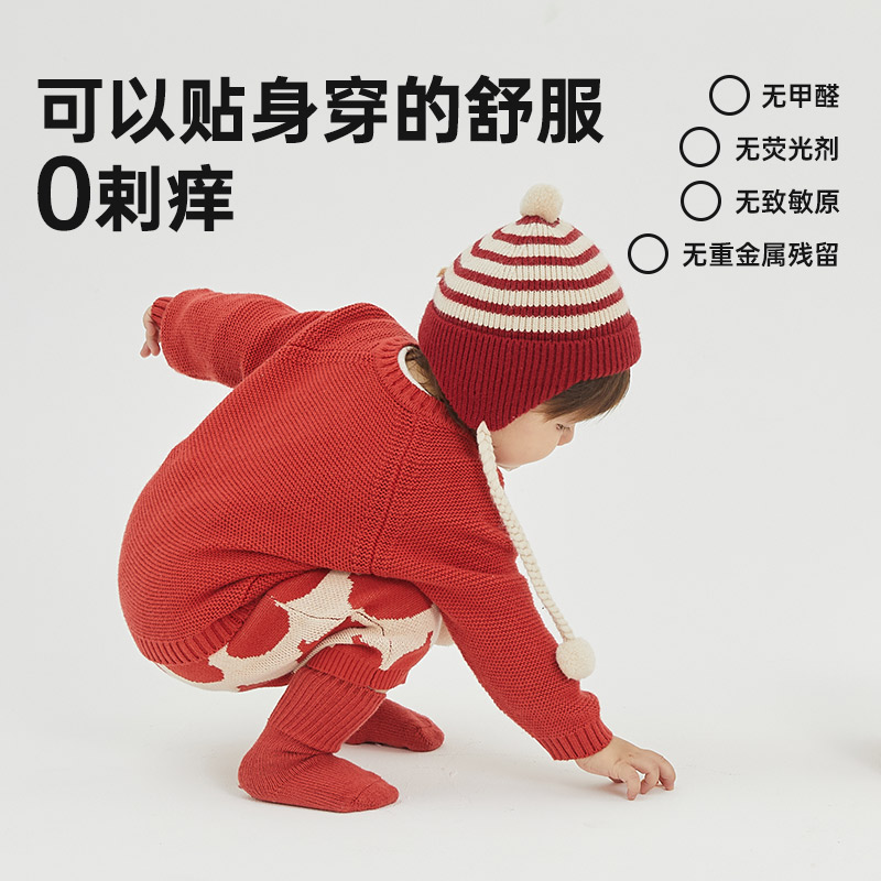 外套 papa爬爬秋冬男女宝宝羊绒毛衣儿童新年红色针织开衫 fulu
