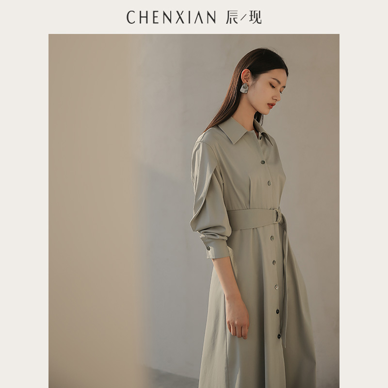 气质赫本风垂感收腰长袖 裙法式 美术馆衬衫 连衣裙女 到手299元