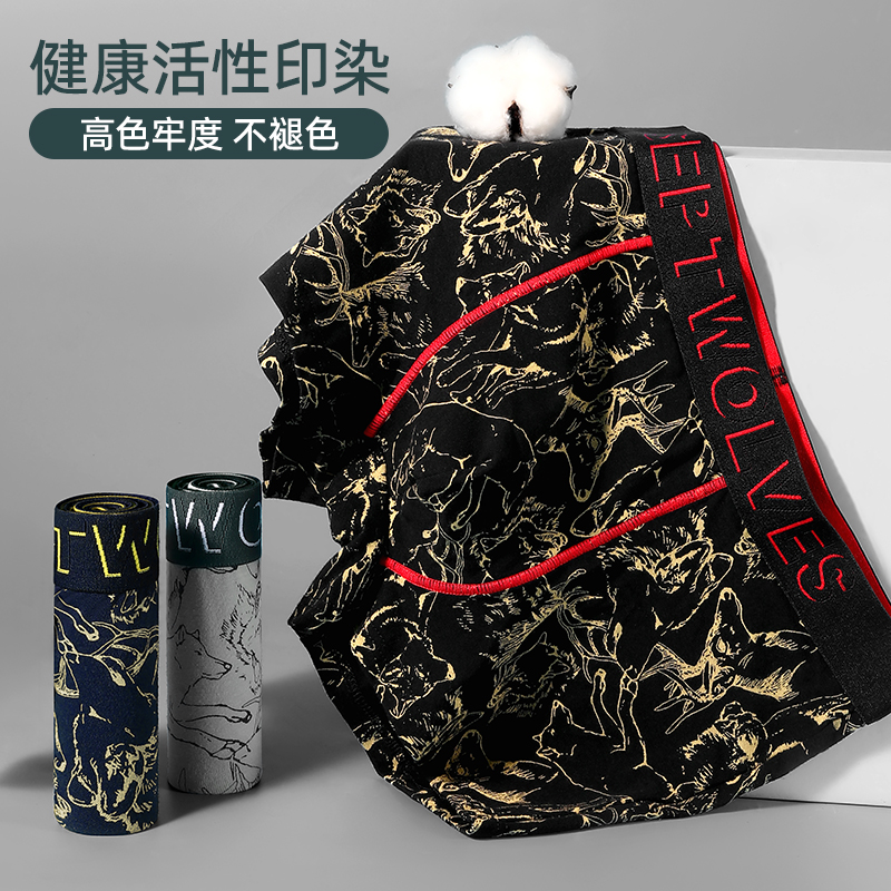 2025新款 男生纯棉全棉抑菌裆四角裤 男式 平角短裤 猫人男士 男款 内裤