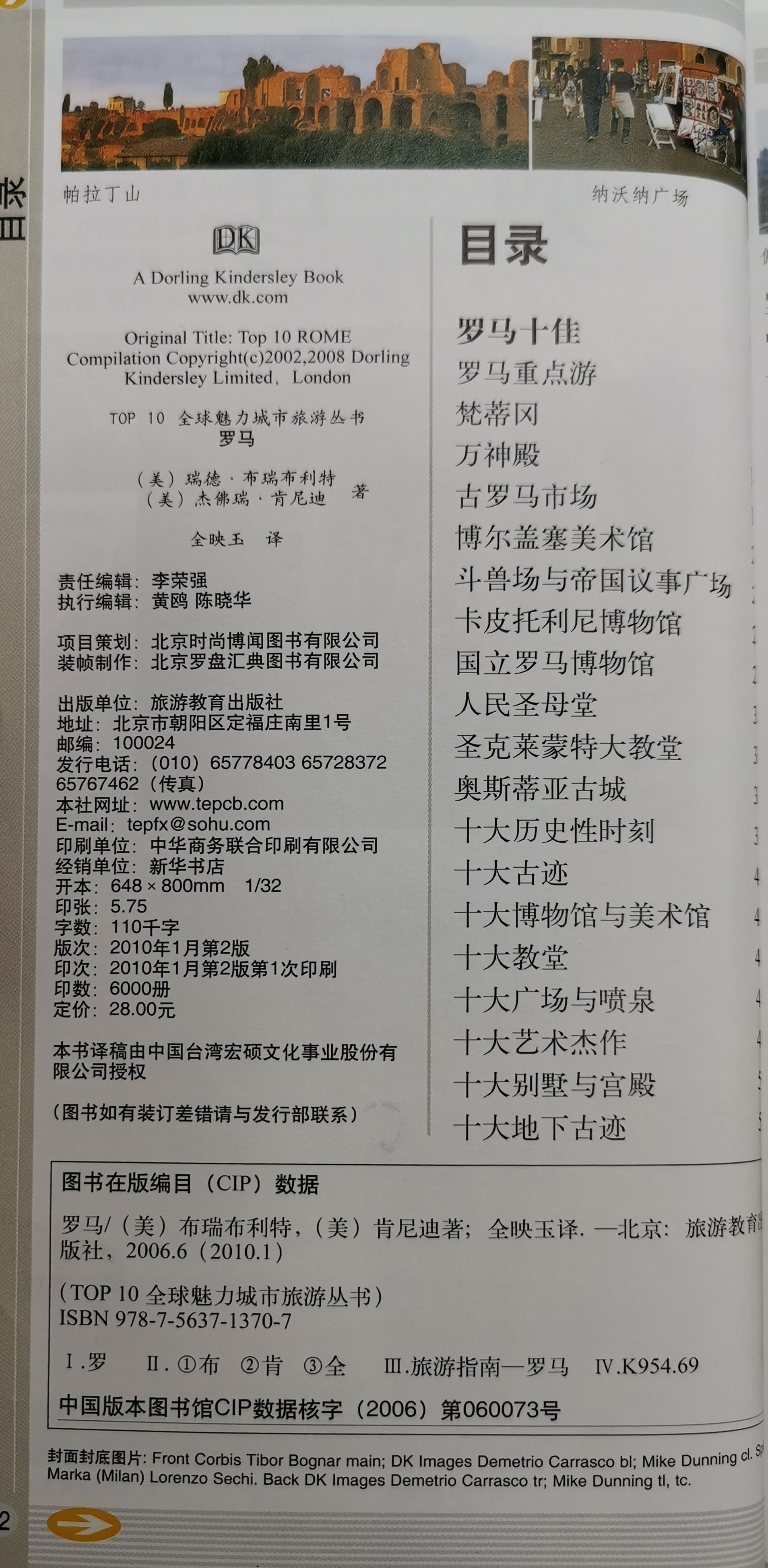 罗马TOP10全球魅力城市旅游丛书9787563713707意大利旅游地图攻略旅游教育出版 纸 社自营博物馆餐厅教堂等top10名单铜版