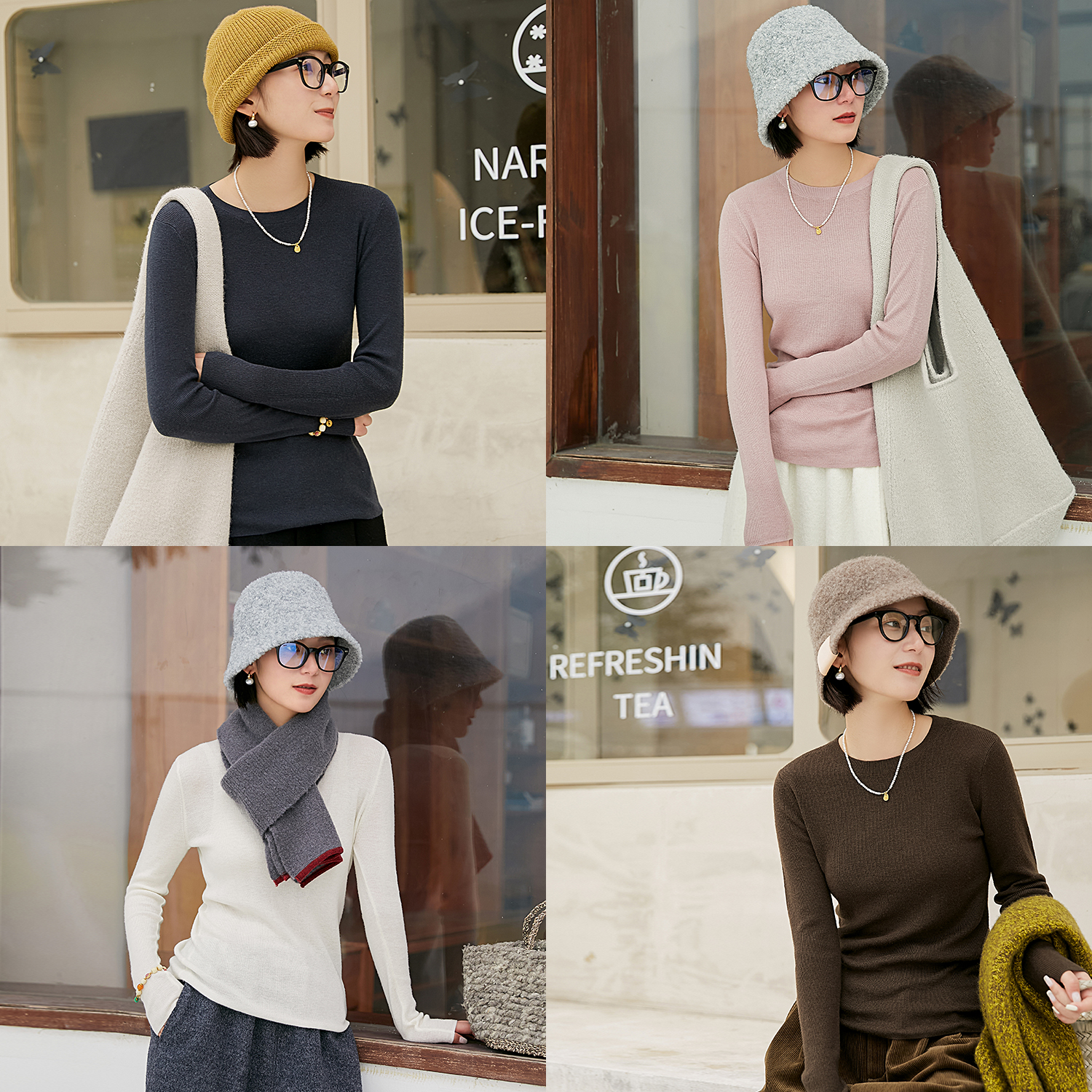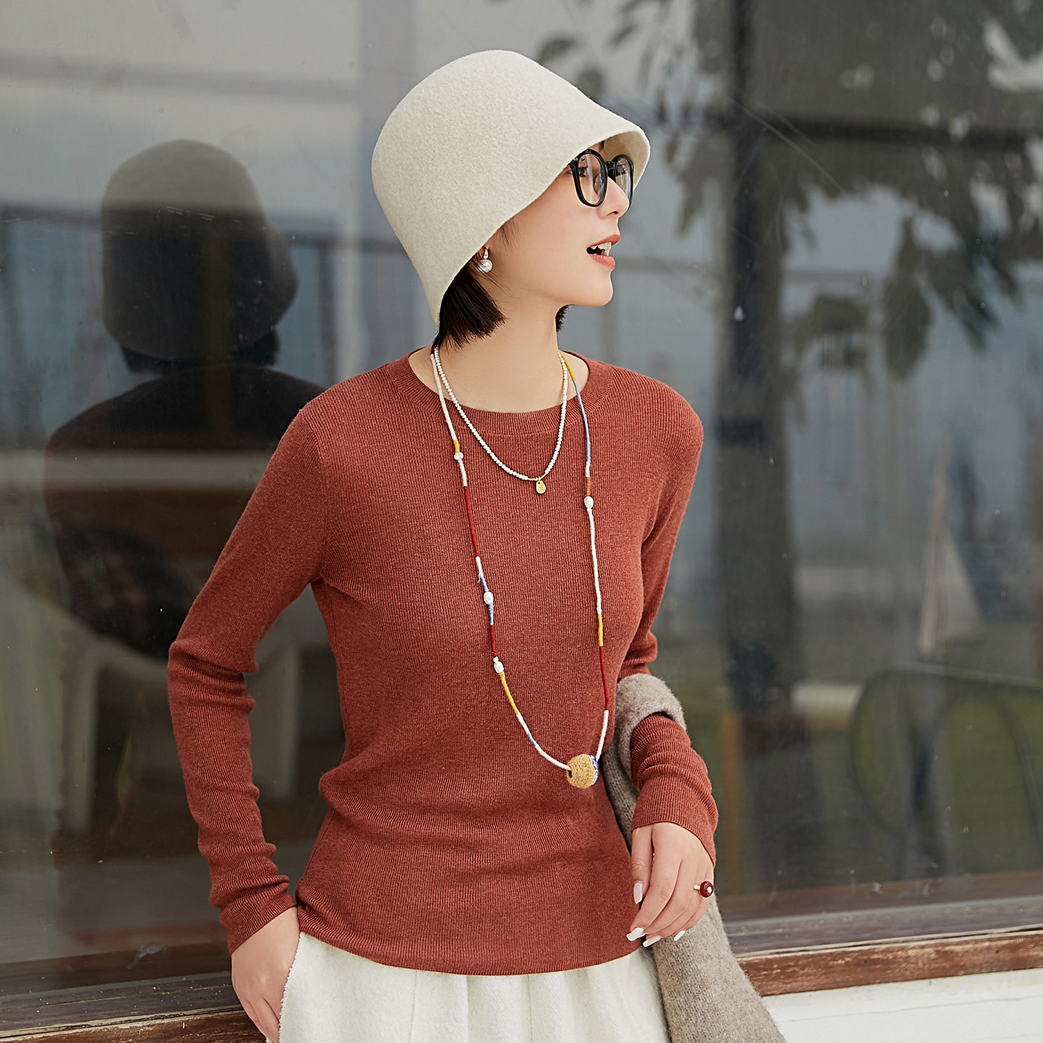 羊毛混纺抗起球软糯休闲针织打底衫 麻霖原创设计女装 春季