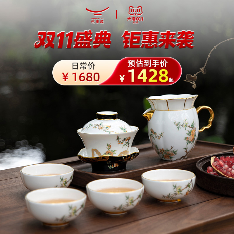 陶瓷茶壶茶杯礼盒 永丰源石榴家园8头9头12头茶具套装 送礼甄选