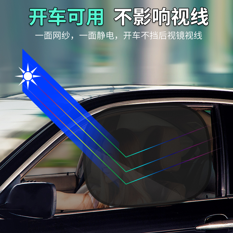 太阳遮阳挡前侧防晒隔热板防晒帘静电网纱可折叠收纳汽车窗帘后档