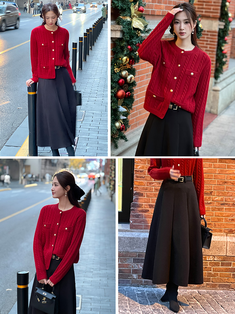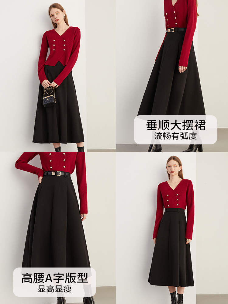 高腰梨型身材A字裙伞裙 半身裙百褶裙大码 胖mm显瘦百搭西装 中长款