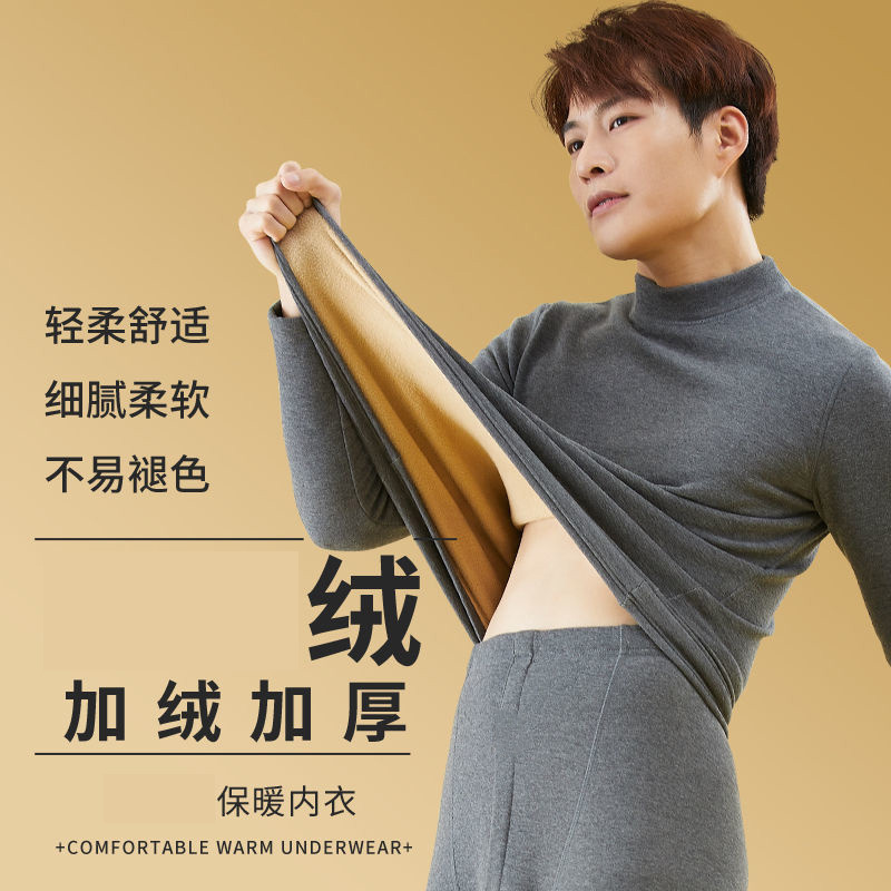高领秋衣秋裤 年轻人保暖内衣男士 防寒防冻打底衫 加绒加厚冬季 套装