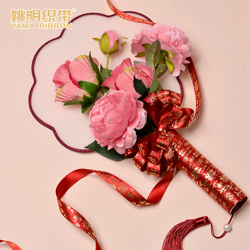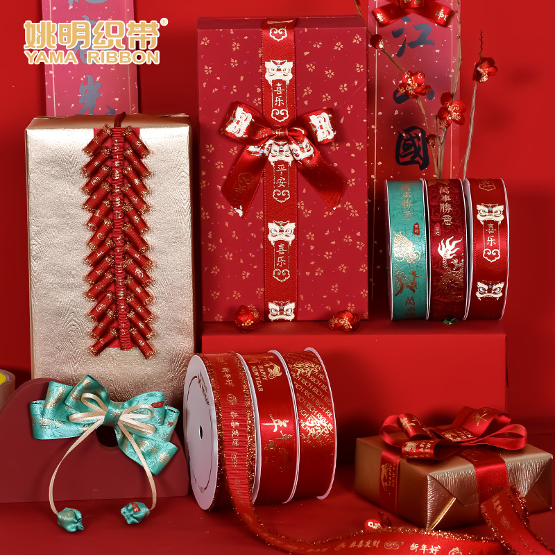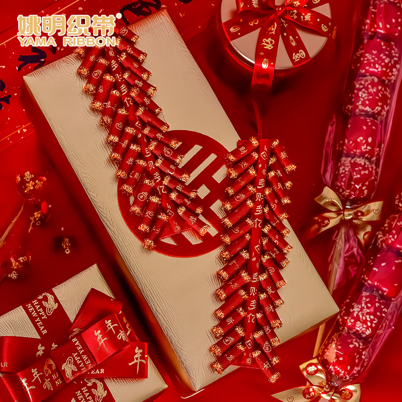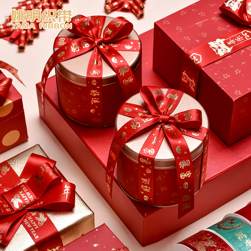 姚明织带国潮新年祝福春节烫金红色丝带结婚礼品装 饰绸带彩带缎带