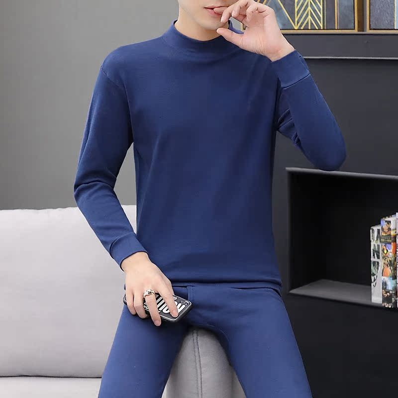 女圆领抗静电厚棉半高领秋冬 套装 三枪保暖内衣男士 纯棉秋衣秋裤