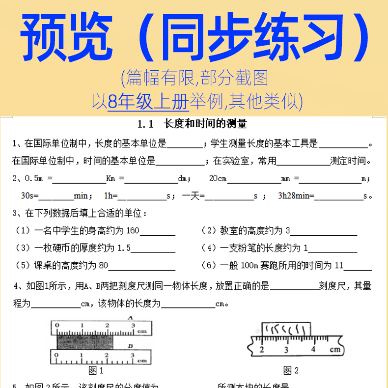 检测期中期末测试答案解析八九年级上册下册初二初三知识点总结全套资料电子版 2025秋新人教版 初中物理试卷试题课时同步练习题单元