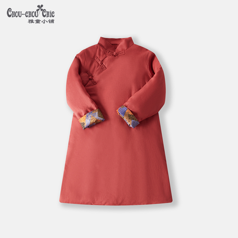 中国风长款 绣红男宝夹棉唐装 拜年服 男女童长袍冬季 雅童小铺新中式