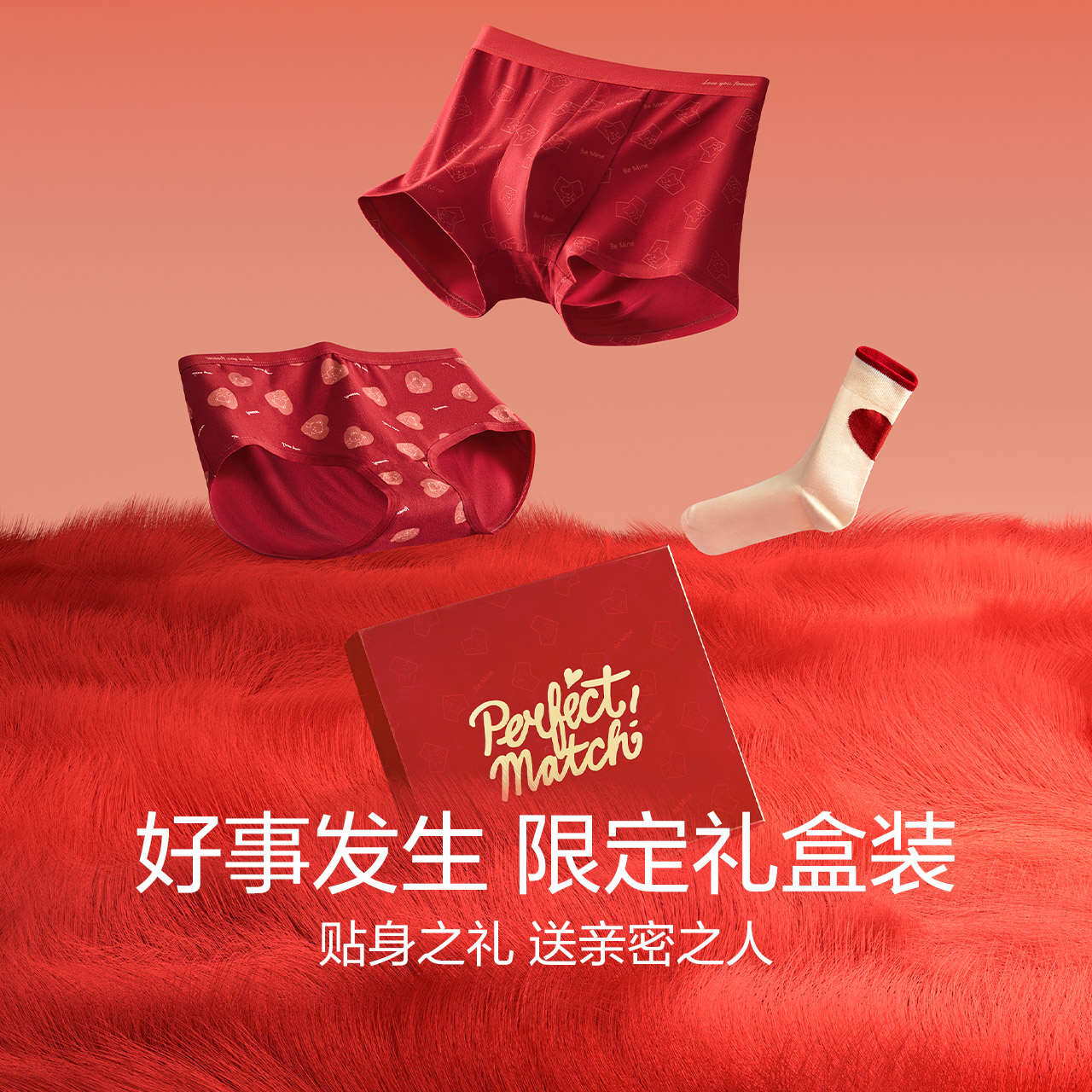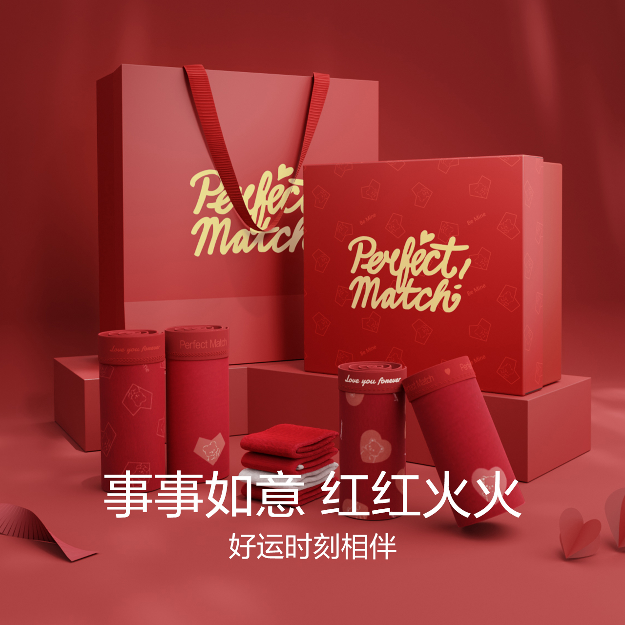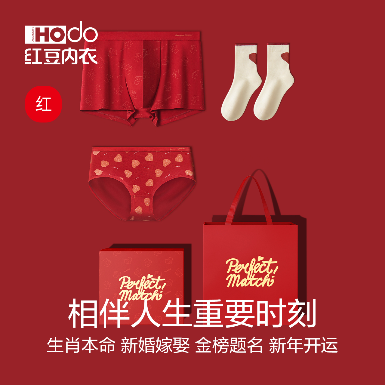 红豆红色本命年情侣内裤 纯棉裆男女袜子结婚礼物2025蛇年礼盒套装